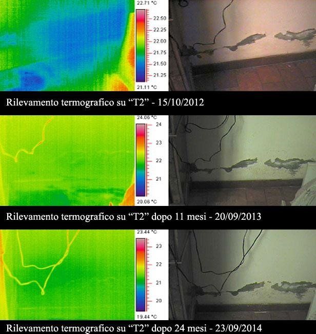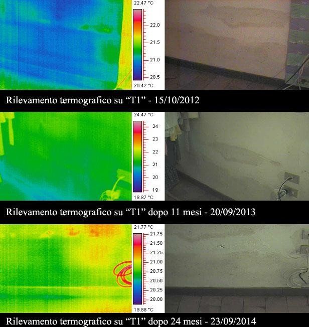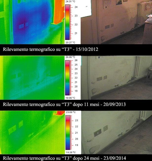 Enfin, trois photos montrent la différence de température des murs suite à la rémission du phénomène ascendant.